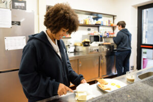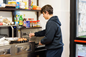 Tra le 7 e le 8 del mattino, gli studenti si dirigono verso la sala comune dell’internato per una colazione completa. Sono liberi di scendere quando preferiscono all’interno di questa fascia oraria. Attorno ai tavoli, gli internati chiacchierano, ridono e condividono i loro progetti per la giornata. Questi momenti semplici e calorosi costruiscono una vera vita comunitaria e rafforzano i legami tra gli studenti.